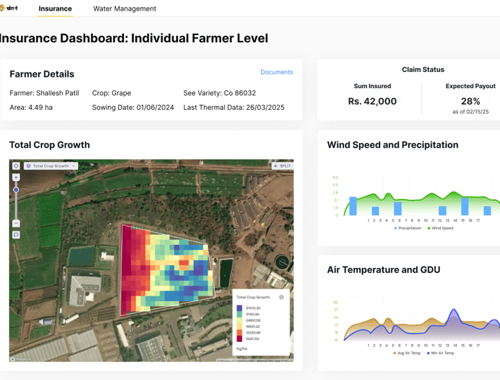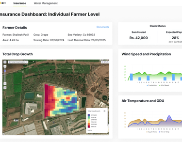 Our solutions span field-level yield estimation, parametric covers for rainfall, floods, and landslides, portfolio exposure mapping, dynamic pricing, and fraud-resistant claims automation. Every product is built for accuracy, transparency, and rapid execution -without field inspections or paperwork.